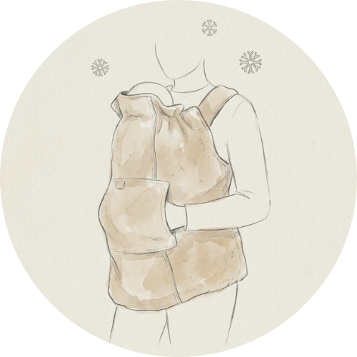 Passt über jede Trage, lässt sich einfach befestigen und hält warm. Du kannst jede Jacke dazu ergänzen.